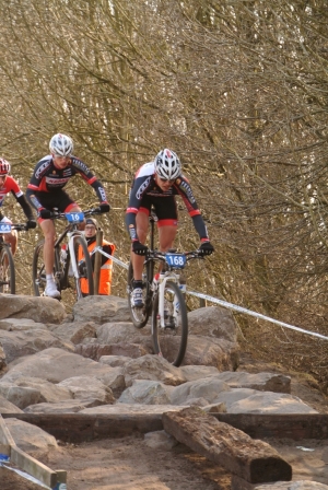 2 rondes lang reed ik in het laatste wiel, ik kon het na de bochten telkens net niet bijpoten maar als er even een lang stuk was kon ik gaan zitten en rammen. Dit had ik al wel veel getraind en zo wist ik lang de aansluiting te houden maar dit mocht niet veel langer duren. Jan schreeuwde me in de verzorging toe dat ik een paar plaatsen verder voor in het groepje moest gaan zitten dus dit probeerde ik dan ook.