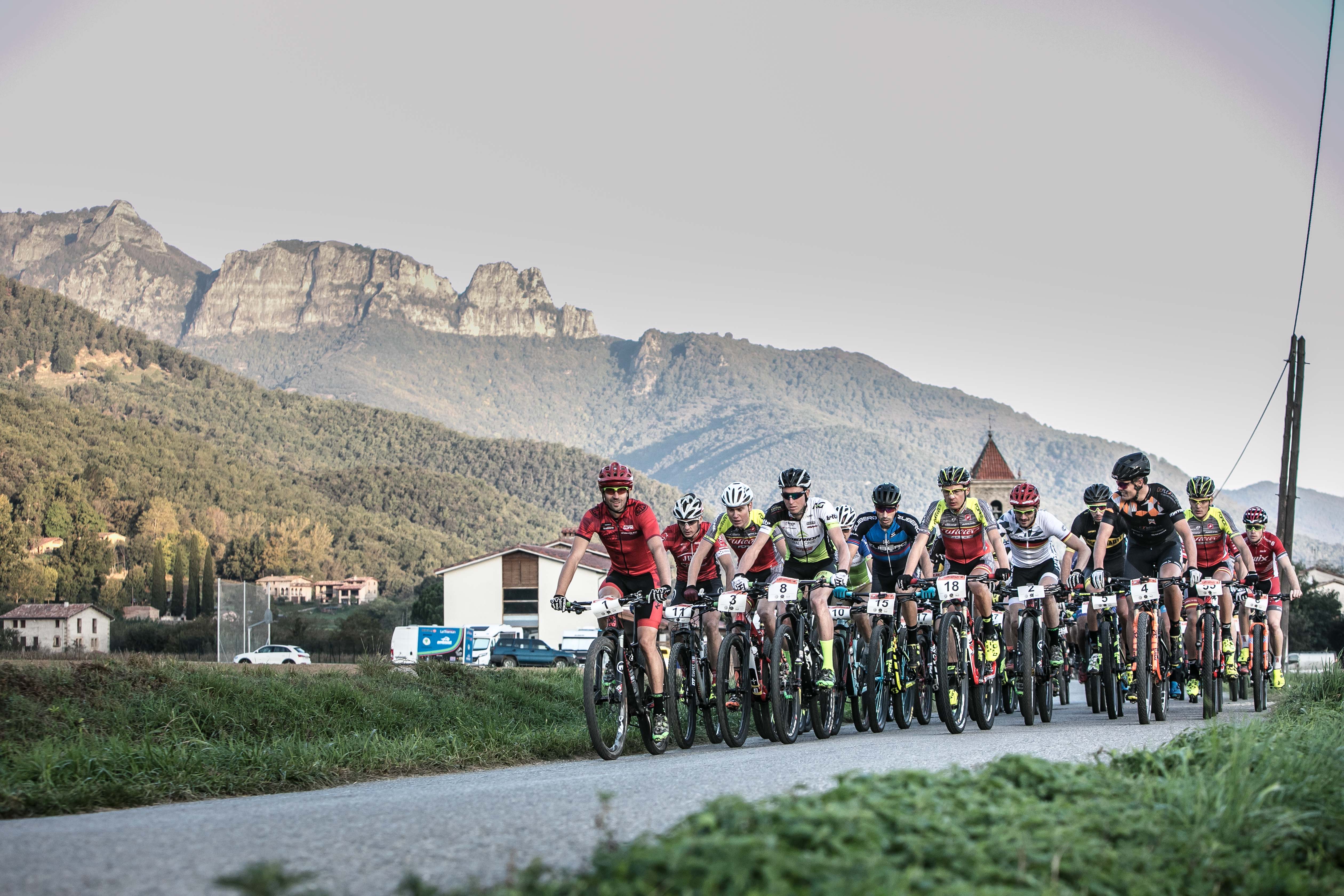 De start vanuit het dorpje Els Hostalets d’en Bas verliep rustig. Tenminste, dat leek zo. Vorig jaar moest ik met een hoog nummer flink dringen om mijn positie te houden, ik had het idee dat ik met rug/stuurbordnummer 4 toch wat meer de ruimte kreeg van mijn concurrenten. Dat was echter alleen tot aan de eerste klim, die ons over asfalt naar de eerste trail voerde. Ik kon m’n positie vrij gemakkelijk verdedigen en vlak voor het oprijden van het eerste pad ging het gas vol open. Een flink deel van het peloton zat al à bloc, ik had tot mijn genoegen zat over om bij de eerste tien het bos in te duiken.